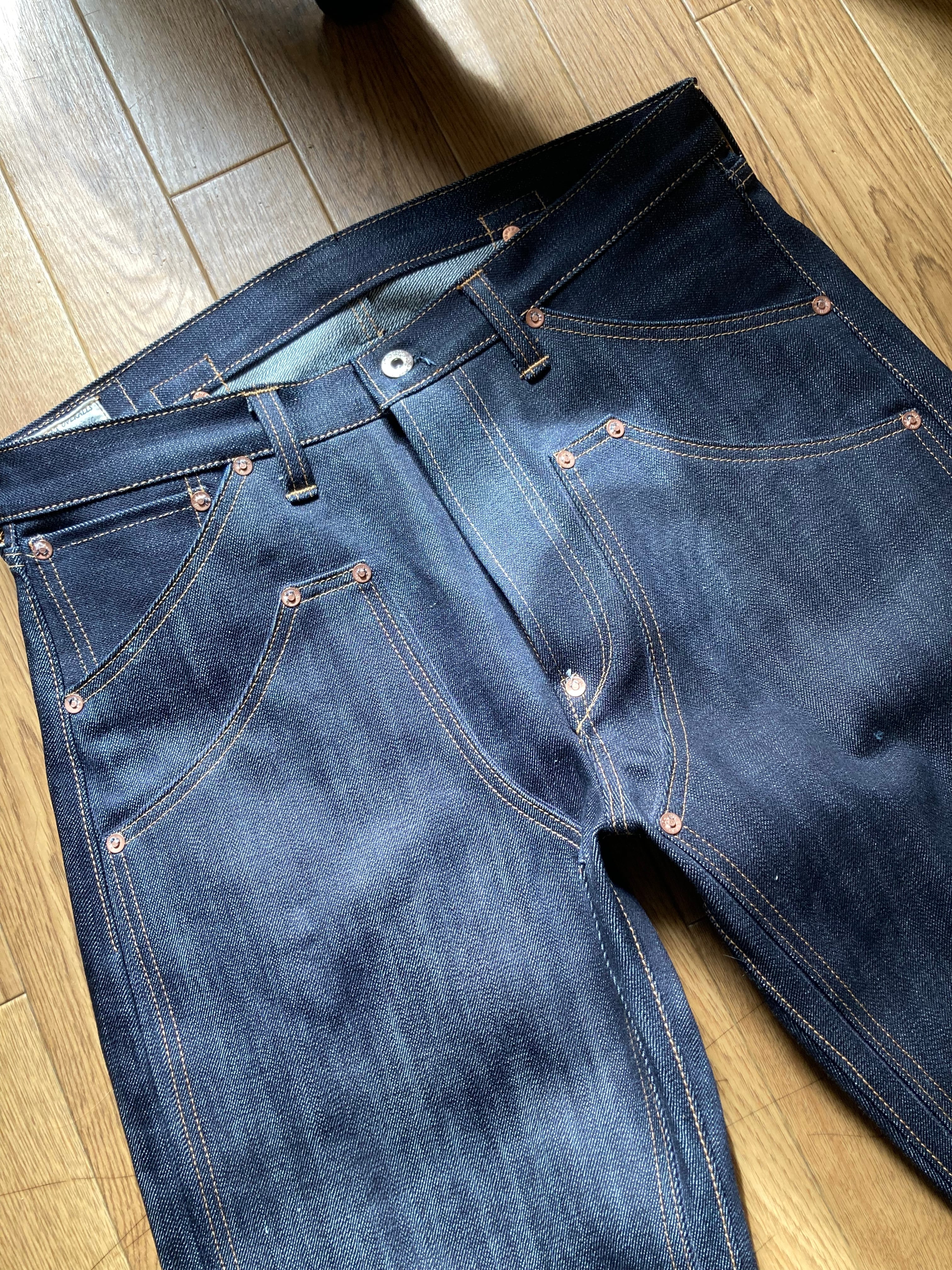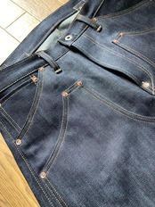 フロントはボタンフライ。サビがはいった鉄製ボタンです。
