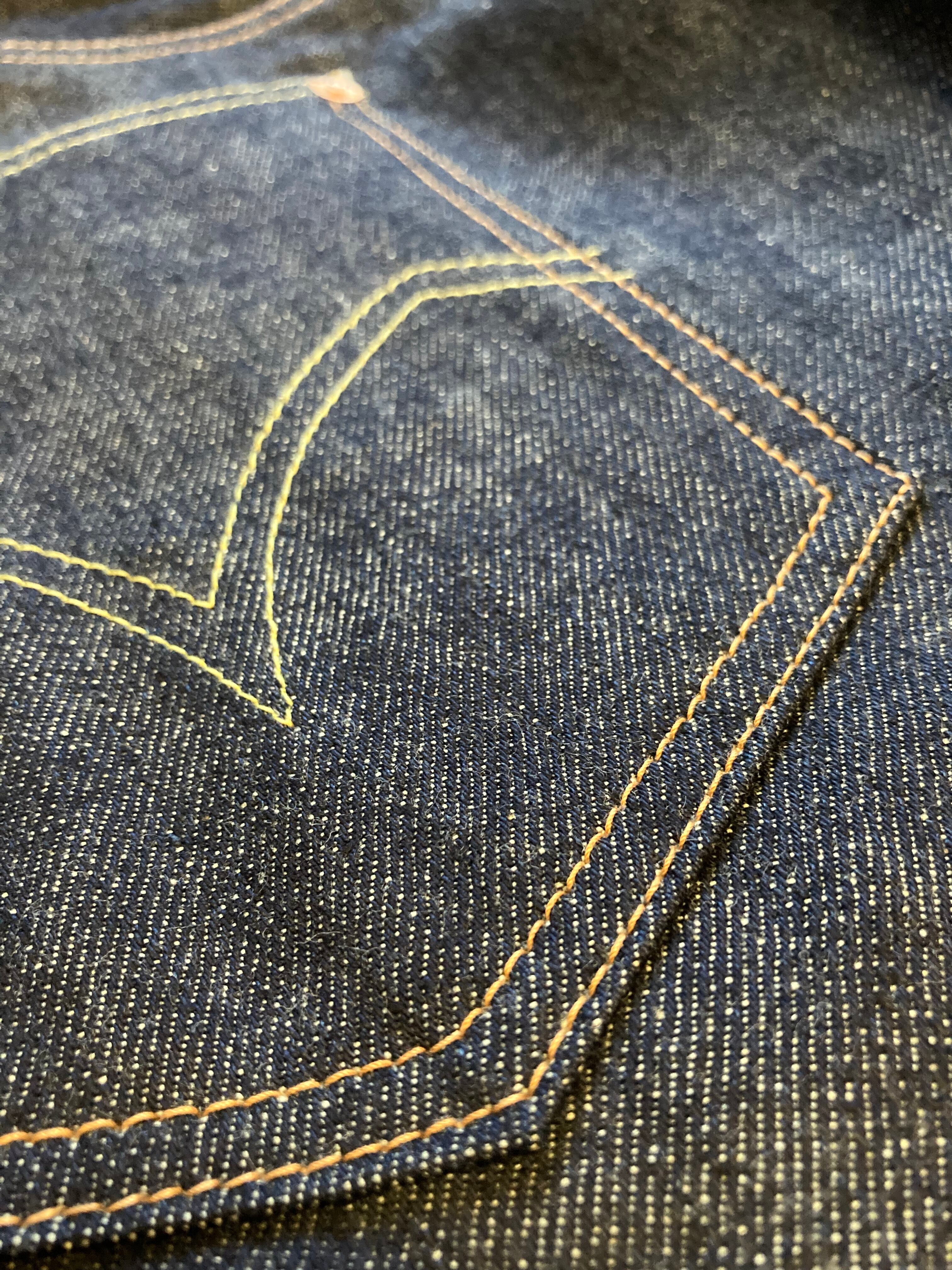 サンフォライズドなので、洗濯してもあまり縮みません。約1〜2%の縮み。ねじれは出るのでヴィンテージっぽい雰囲気になると思います。約13oz