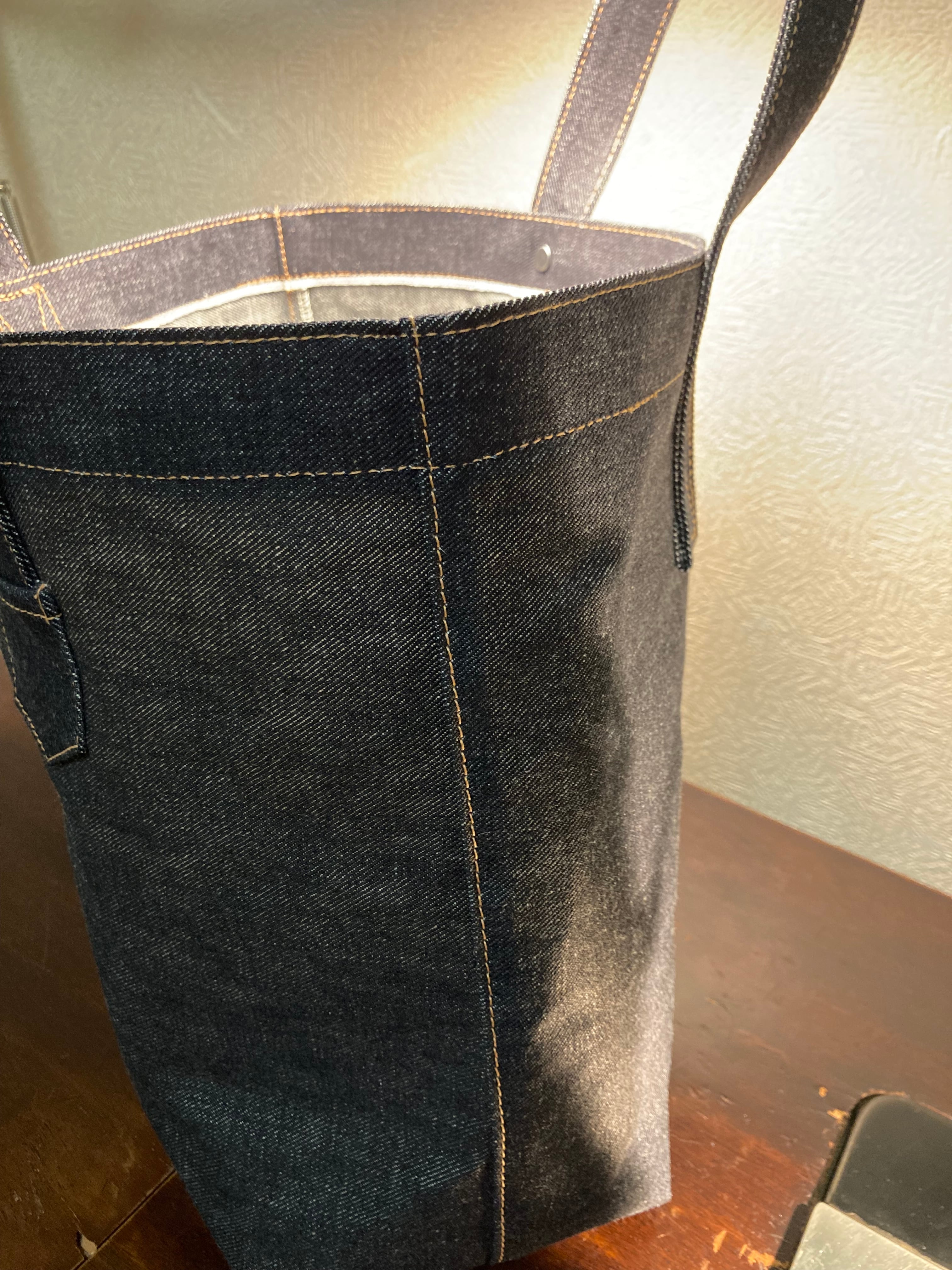 持ち手の長さが変わるデニムトートバッグ