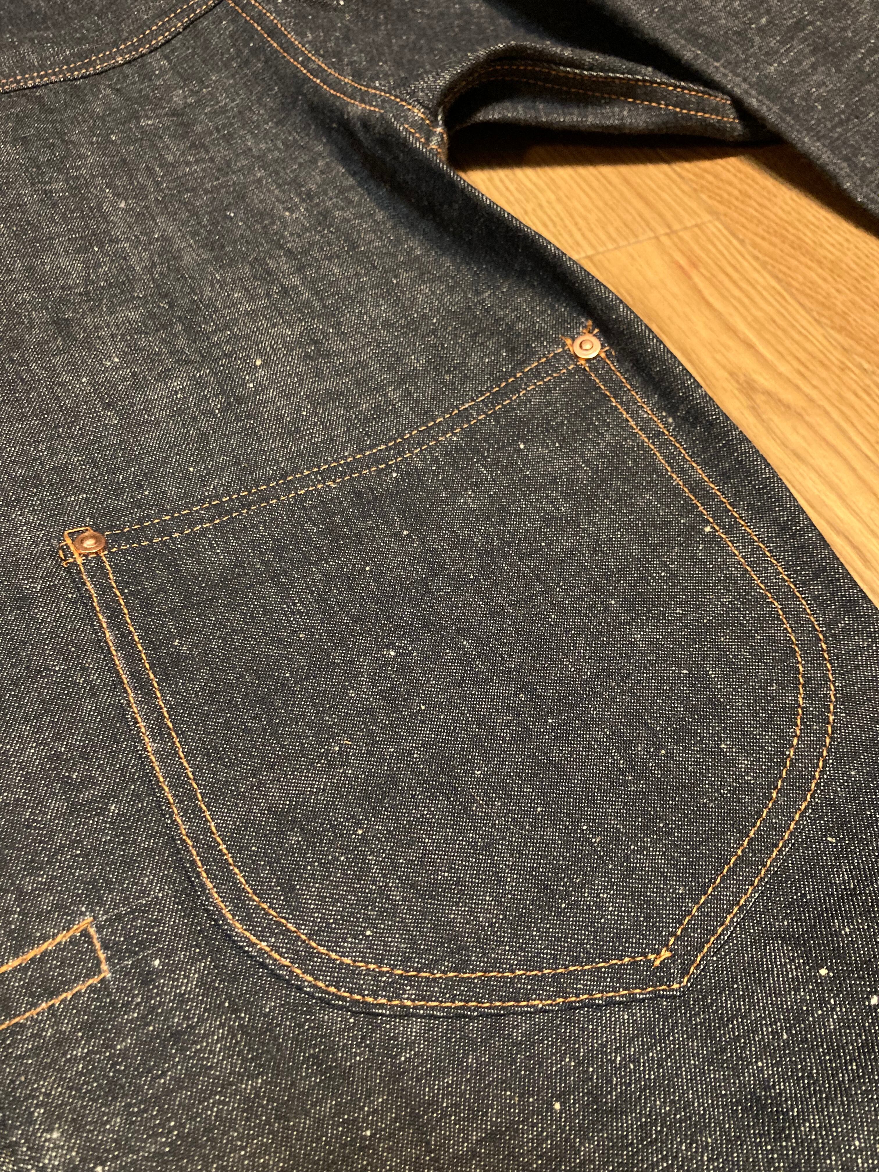 生地は防縮加工された11ozのネップデニム。厚手のシャツジャケットのイメージです。洗濯後は約4%縮みます。